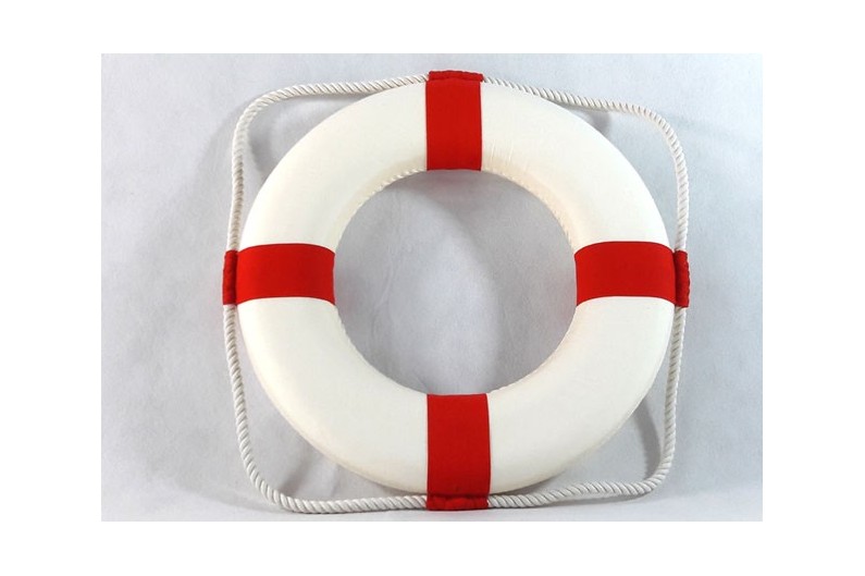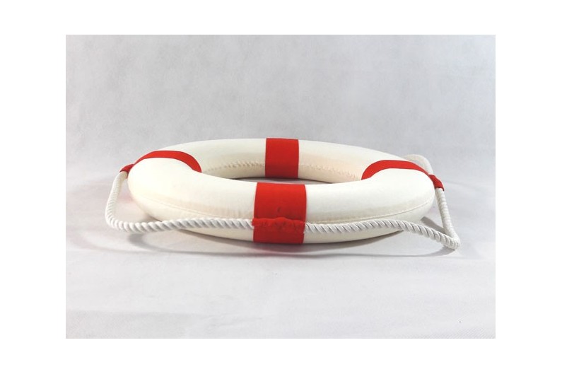 Réplique exacte d'une bouée de sauvetage idéale pour donner une touche marine. L'intérieur de la bouée est réalisé en porexpan, recouverte d'une toile en coton et entourée d'une corde utilisée comme point d'accroche.