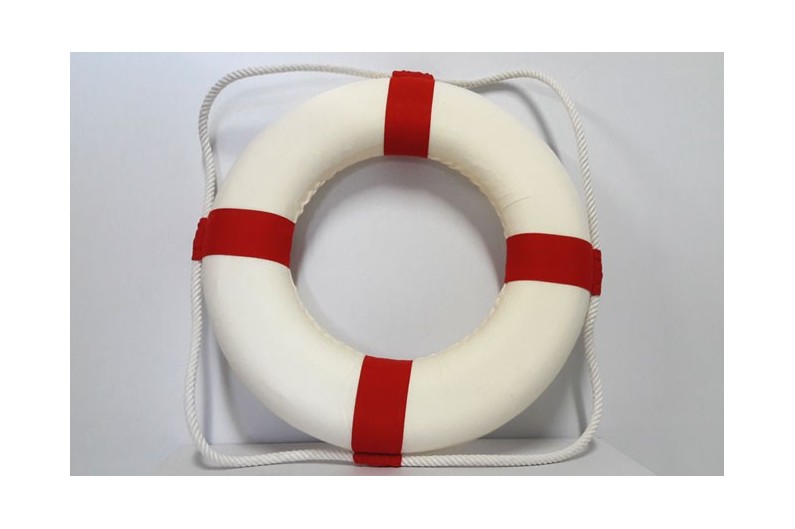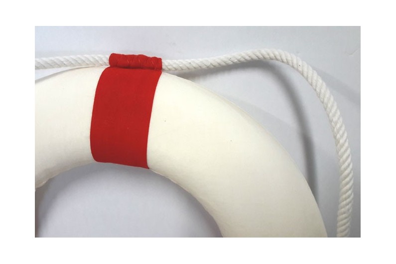 Réplique exacte d'une bouée de sauvetage idéale pour donner une touche marine. L'intérieur de la bouée est réalisé en porexpan, recouverte d'une toile en coton et entourée d'une corde utilisée comme point d'accroche.
