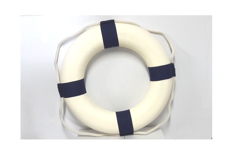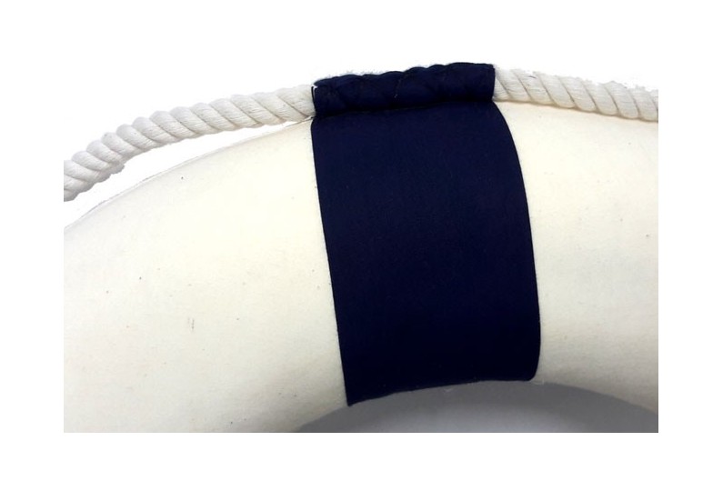 Réplique exacte d'une bouée de sauvetage idéale pour donner une touche marine. L'intérieur de la bouée est réalisé en porexpan, recouverte d'une toile en coton et entourée d'une corde utilisée comme point d'accroche.