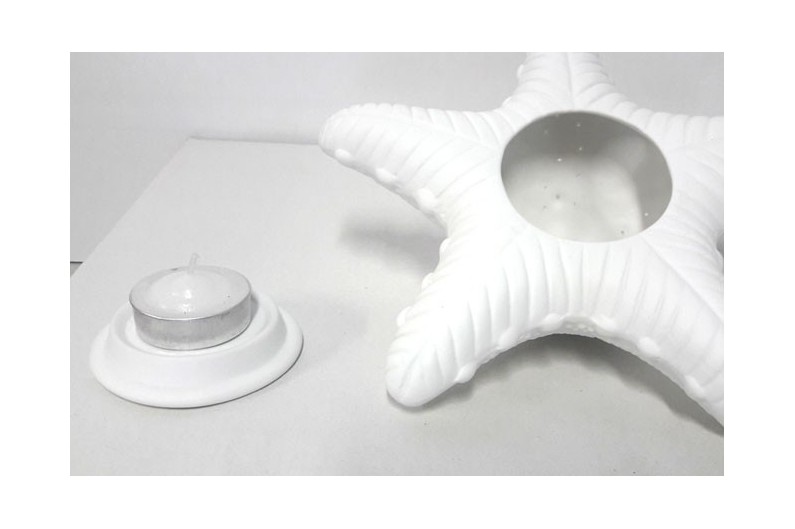 Translucide porcelaine bougeoir en forme une étoile de mer qui émet une belle lumière chaude.
