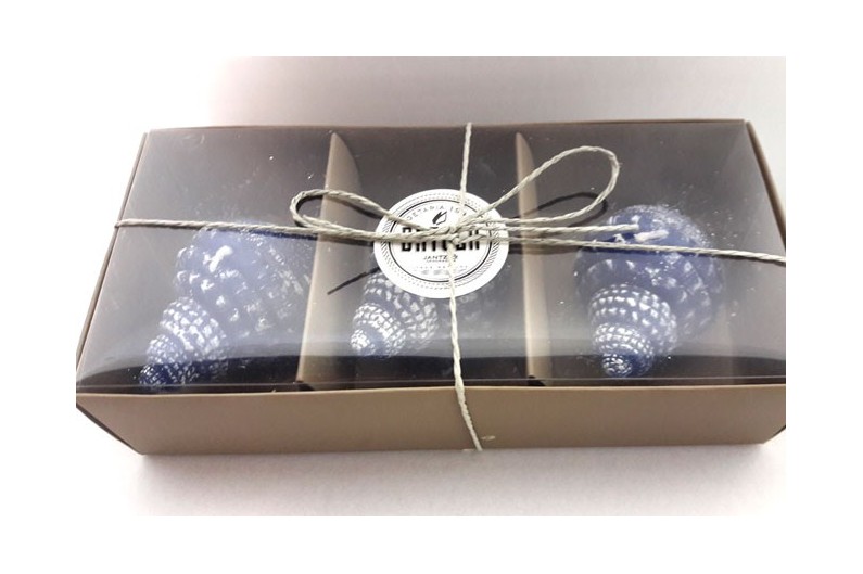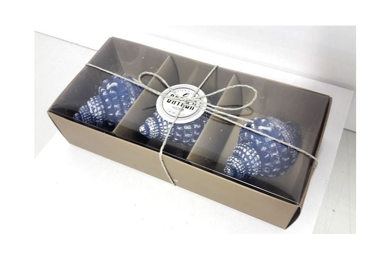 Lot de 3 bougeoirs en verre de couleur bleu.
