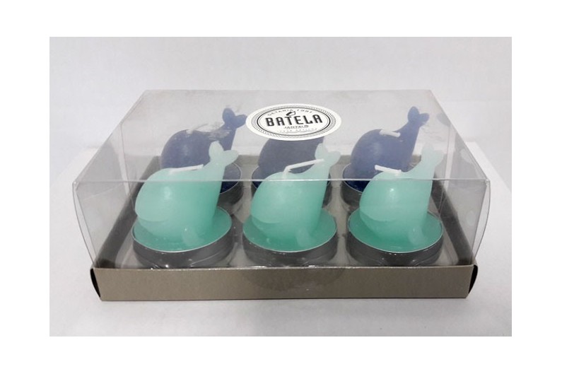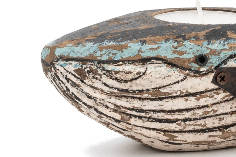 Lot de 2 bougeoirs en bois en forme de baleine. Produits artisanaux.