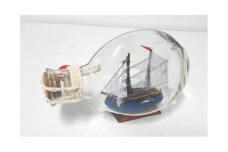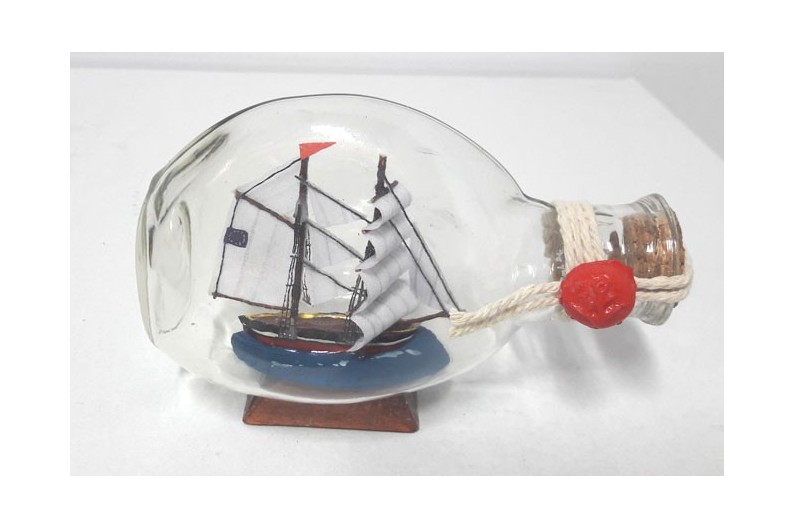 Bateau en bouteille de 13,5cm longueur, qualité du bois sculpté, peint et scellé avec de la cire. Idéal comme un rappel de conventions ou de visites, ou comme un cadeau pour les enfants.   Normalement, il y a de grandes quantités en stock, cependant, il est possible quun produit nest pas possible de fournir plus de 500 unités.