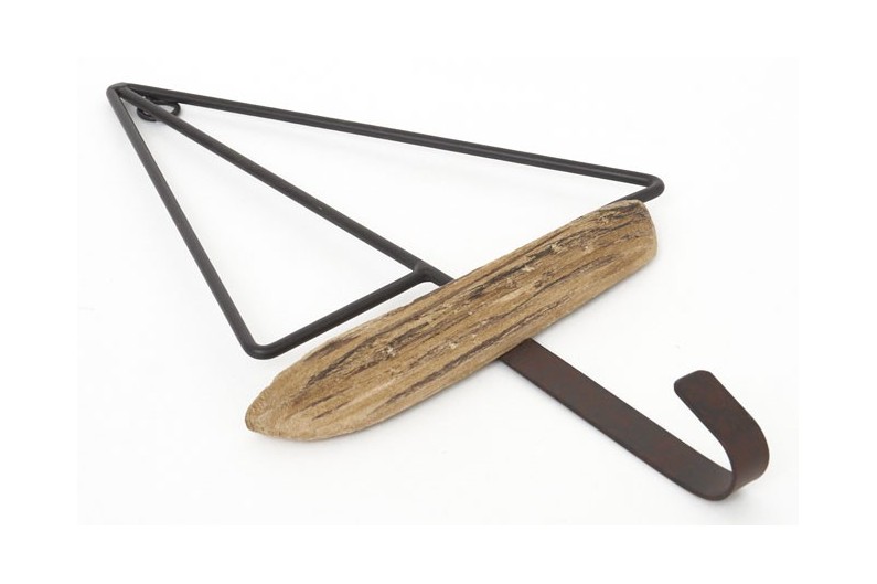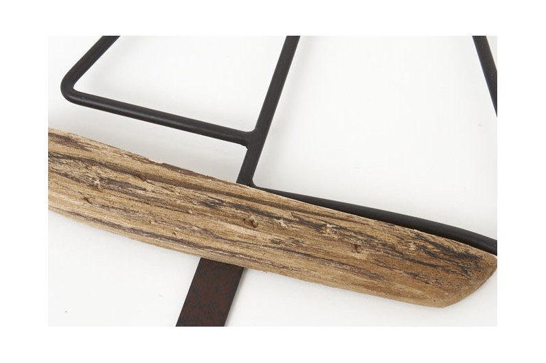 Portemanteau mural en forme de voilier, fait main en bois et acier.