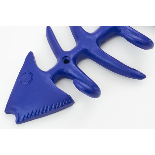 Portemanteau en forme d'arête de poisson, en métal et bleu ou vert.