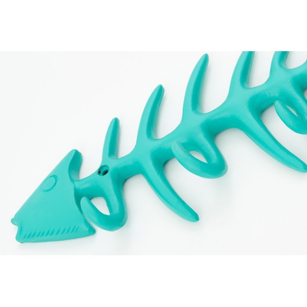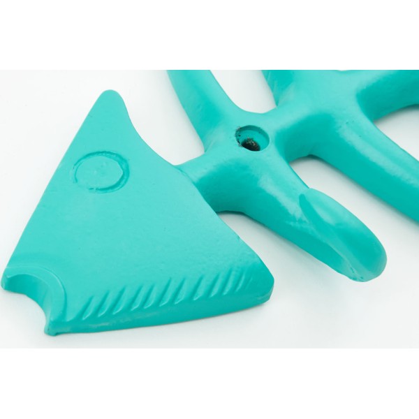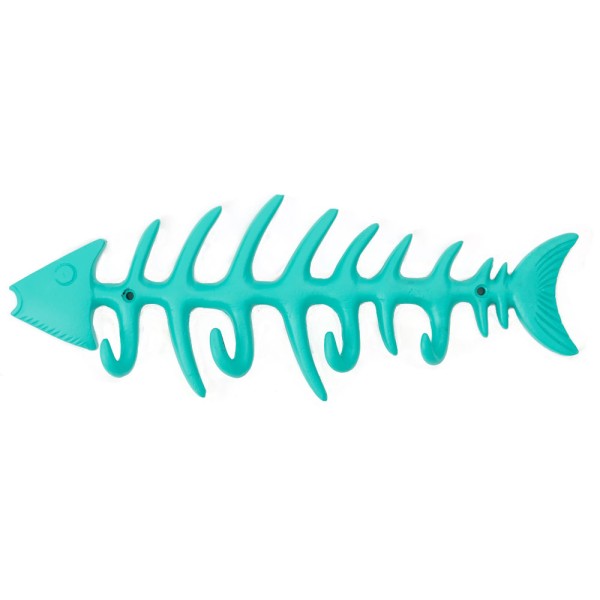 Portemanteau en forme d'arête de poisson, en métal et bleu ou vert.