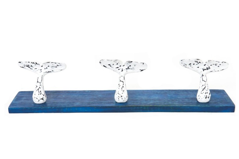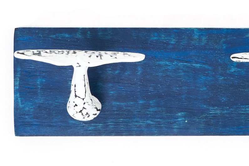 Dangler en forme de queue de poisson aux couleurs vives avec trois cintres en métal pour accrocher des sacs, manteaux et tout ce que vous voulez. Fait de bois et peint à la main.
