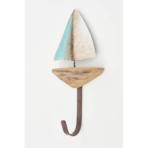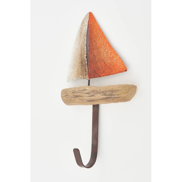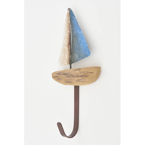 Set de 3 cintres muraux en forme de bateau, fabriqués à la main en bois et en acier.