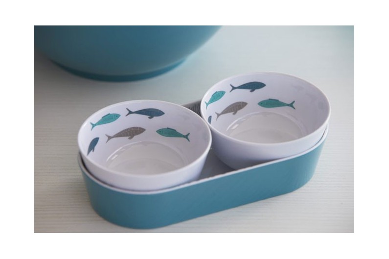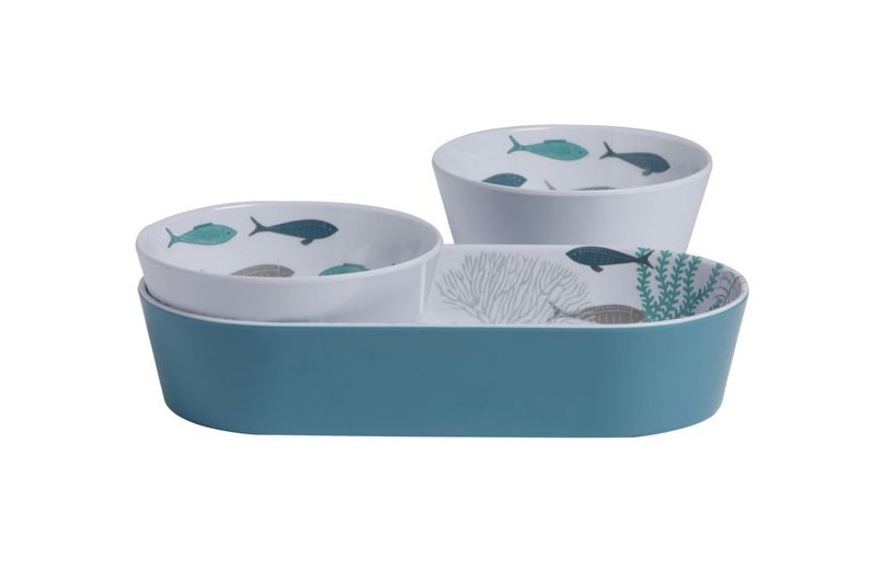 Set snack composé de 2 bols et plateau, avec fond marin.
