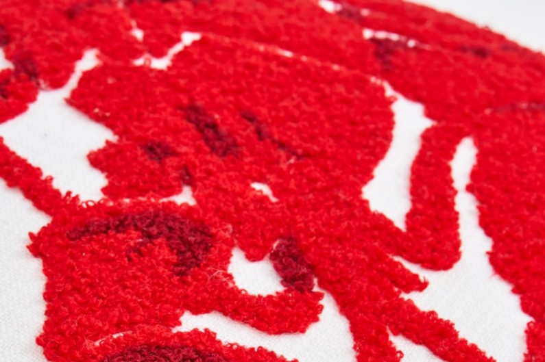 Coussin en coton et laine avec rembourrage indépendant et fermeture éclair pour le lavage. Un homard rouge est imprimé. Coussin de haute qualité.