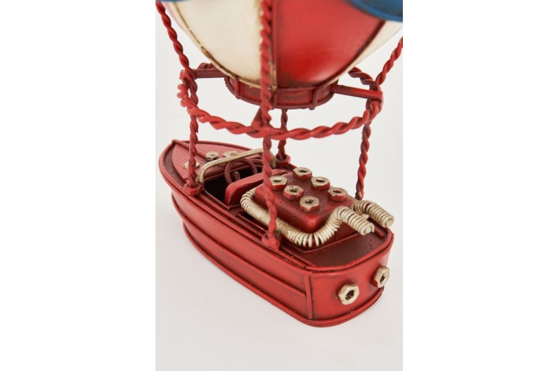 Figure décorative d'une montgolfière avec un bateau, réalisée en métal et peinte à la main en rouge. Cette belle figure de montgolfière décorera votre maison ou votre bureau avec un style très personnel.