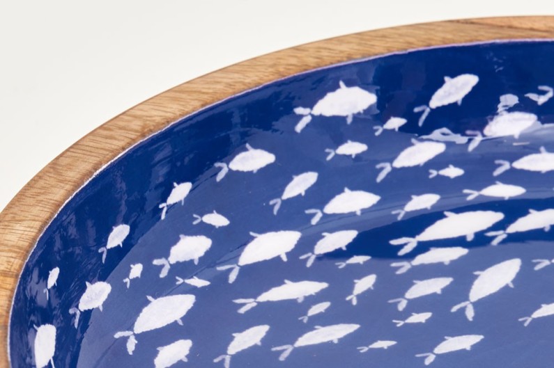Bol en bois de bambou et émaillé à l'intérieur avec poisson imprimé.