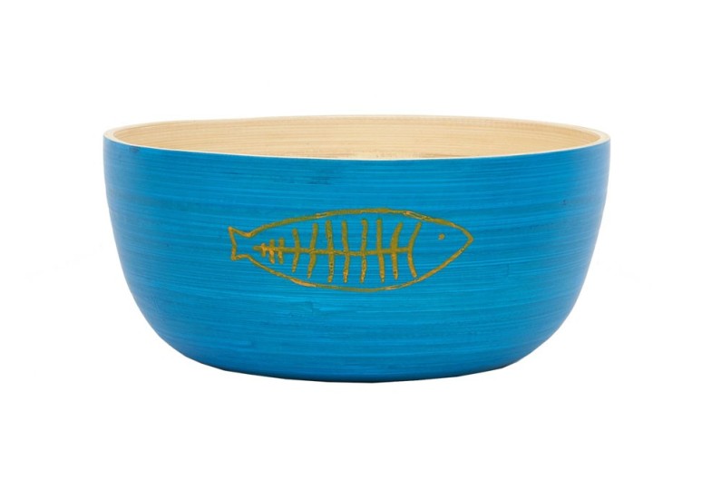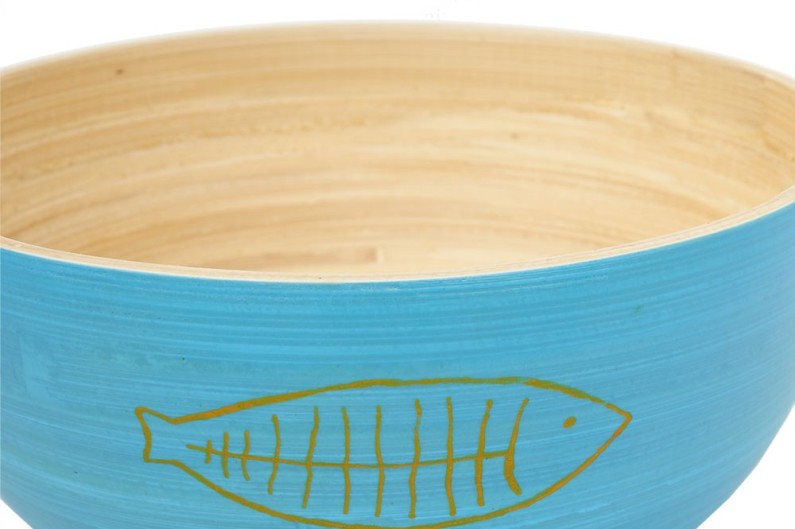 3 bols en bois de bambou, de différentes couleurs bleues. Accessoires de table en bambou durables et écologiques. Un produit coloré pour toute occasion à l'intérieur ou à l'extérieur.