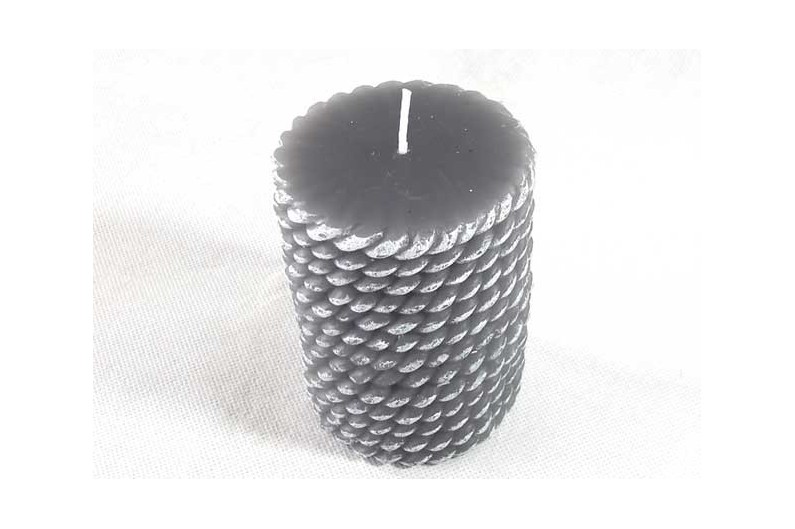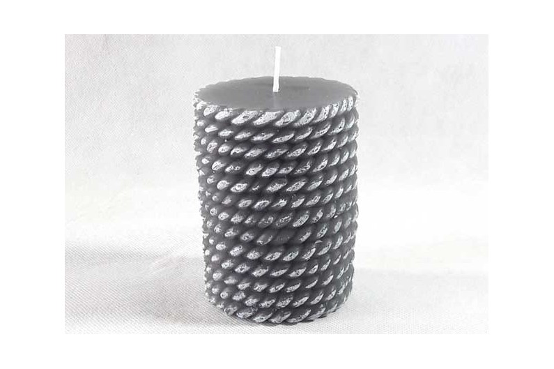 Set de 2 bougies en forme rouleau de corde, couleurs blanc et gris.