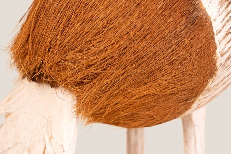 Pélican en bois d'albasia et corps en noix de coco. Fabriqué à la main en Indonésie, pièce unique.