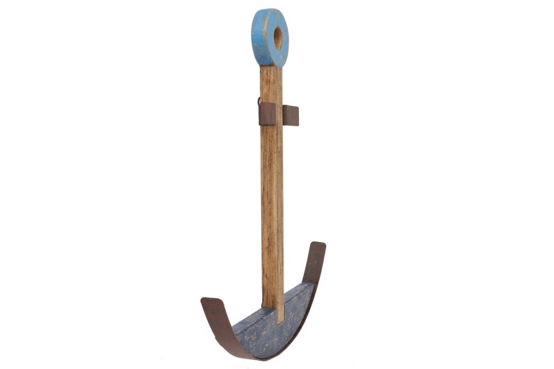 Ancre de bateau rustique décorative du bois et acier. Belle reproduction de l'ancre utilisée par les bateaux pour éviter de dériver, emportés par les courants ou poussés par les vents.