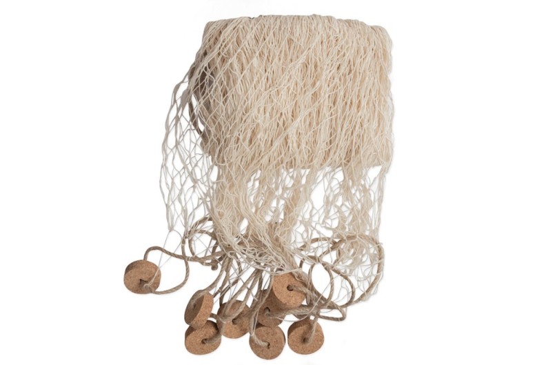 Filet de pêche en coton. Des flotteurs sont attachés à chaque extremité par une corde en chanvre. Objet de marine qui offrira un esprit déco bord de mer.