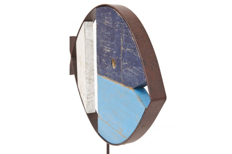 Figurine de bureau d'un poisson, fabriquée à la main en bois et en acier.