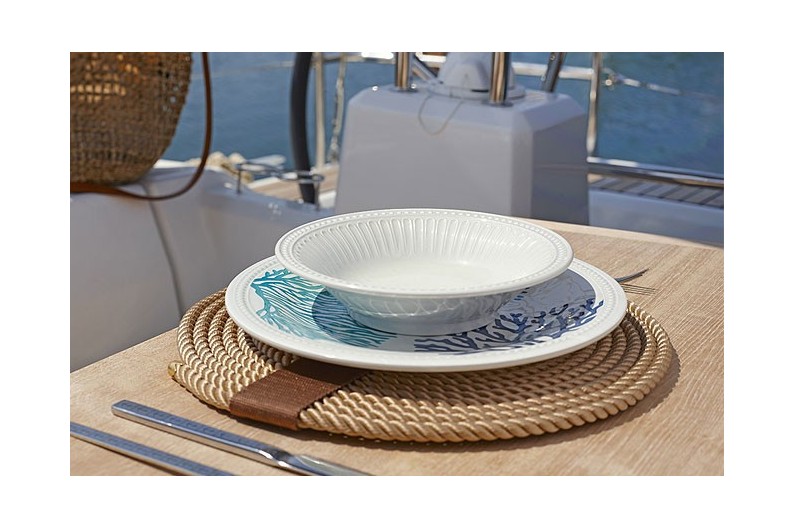 Set de 6 unités de assiette plate de belle conception, de fond blanc et des algues.