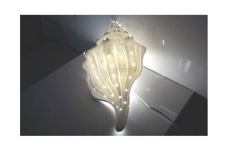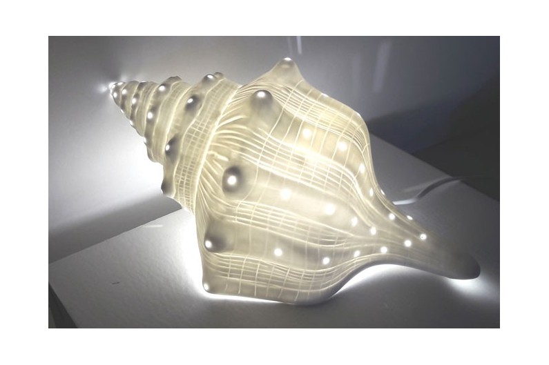 Lampe coquille en porcelaine translucide. Belle lampe marine qui diffuse une lumière tamisée, idéale pour ambiances intimes et relaxantes.