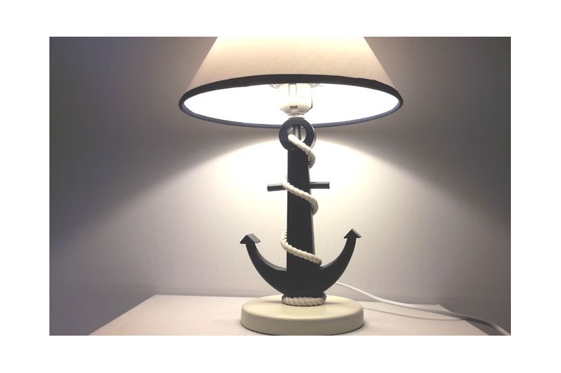 Lampe originalestyle marin avec pied d'ancrage. Le pied d'ancrage est faite de bois de pin. La corde est en coton.