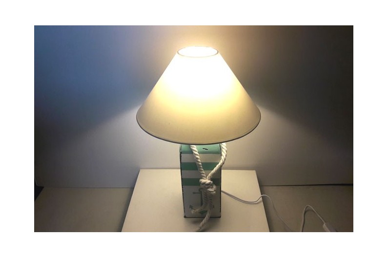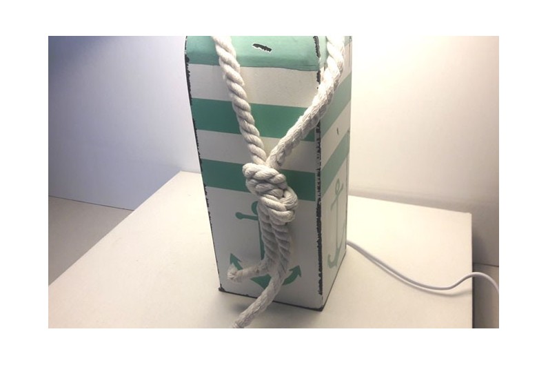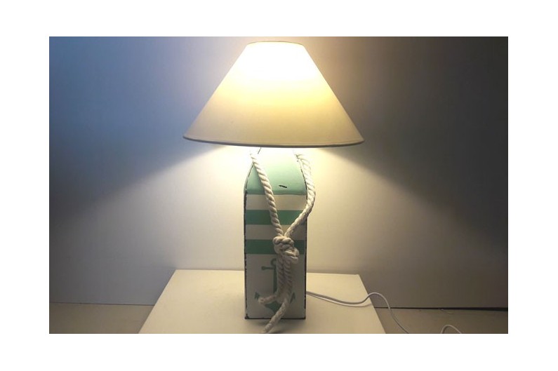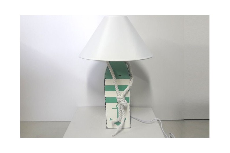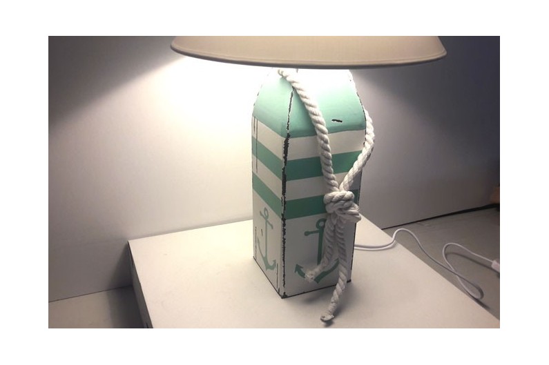 Lampe decorative avec pied balise en bois. Fait et peint à la main.