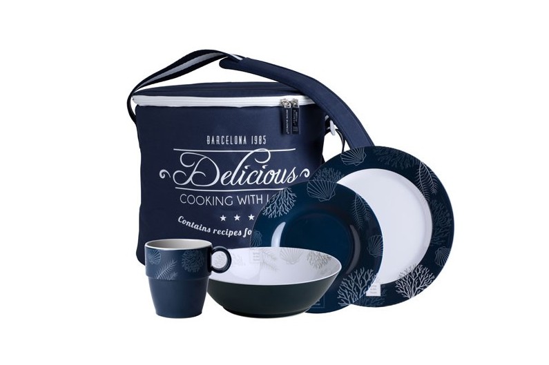 Set de 24 pièces, et compris: 6 assiettes plates, 6 assiettes creuse, 6 assiettes à dessert, 6 Mugs et panier.