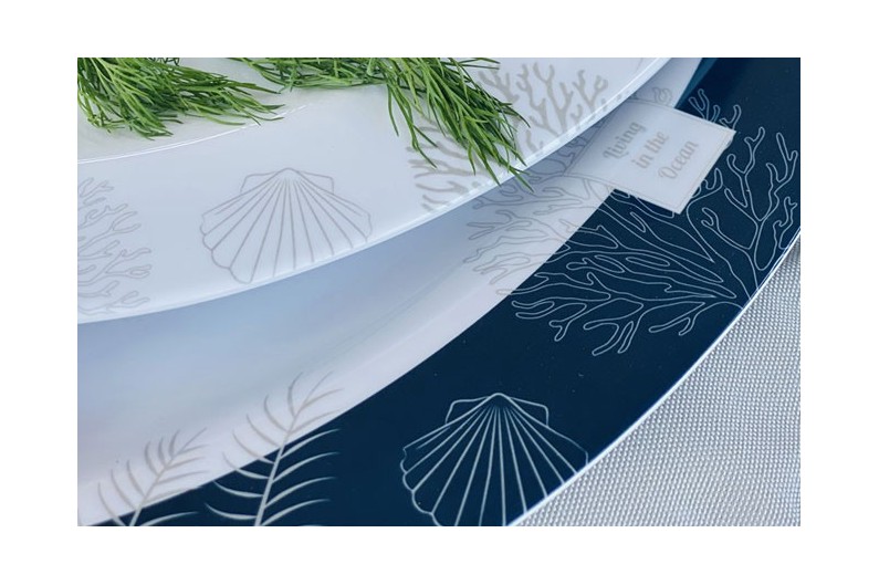 Set de 6 unités de assiette plate de belle conception, blanc et bleu.