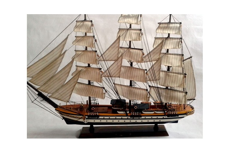Amerigo Vespucci a été construit en 1930 à la Regio Cantiere Navale de Castellammare di Stabia, près de Naples, où il a été lancé le 22 Février 1931, pour le 50ème anniversaire de la fondation de l'Académie navale. Il est encore à flot comme un navire-école. Le navire transporte également le rôle d'ambassadeur de la culture italienne et de la tradition navale. Belle modèle de décor maritime.