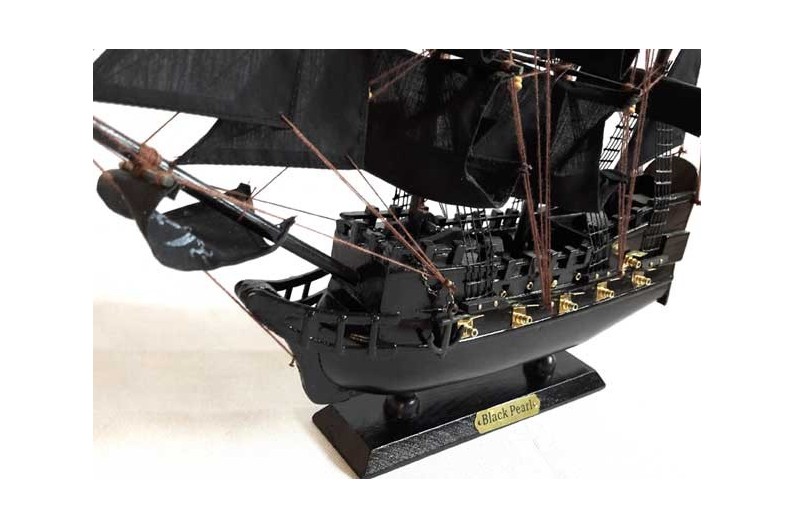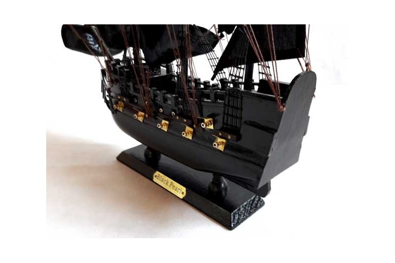 Maquette du "Black Pearl" ou "Perle Noire", conçu pour les films Pirates des Caraïbes. Beau modèle de décor marin en bois. Les voiles noires sont faits de coton.