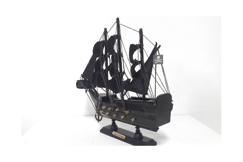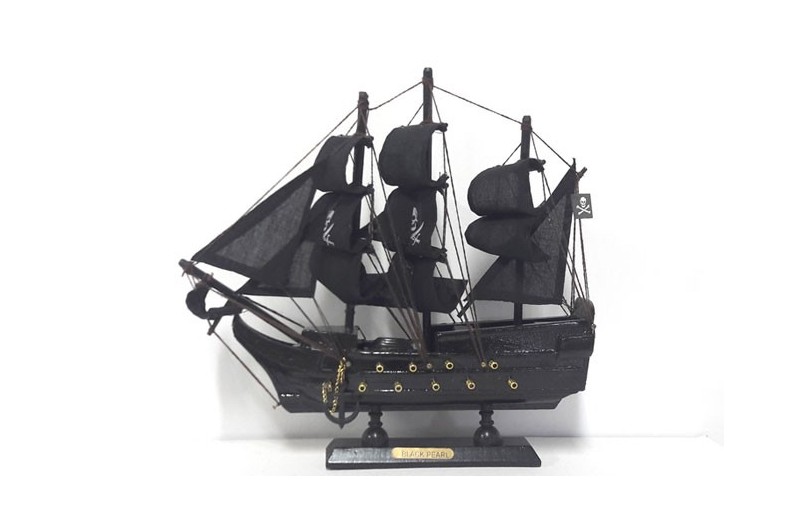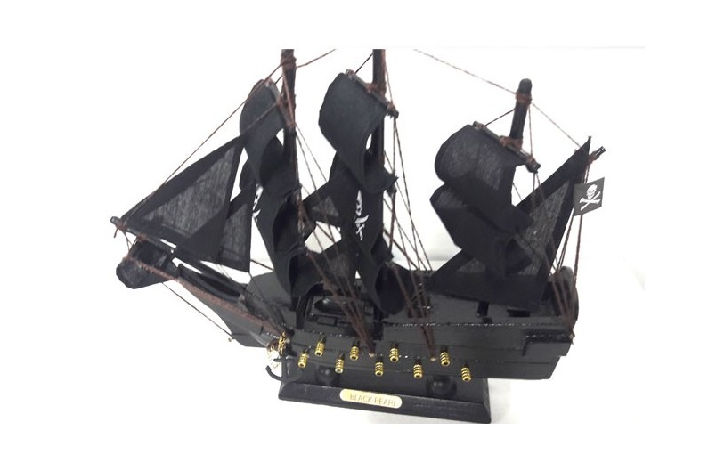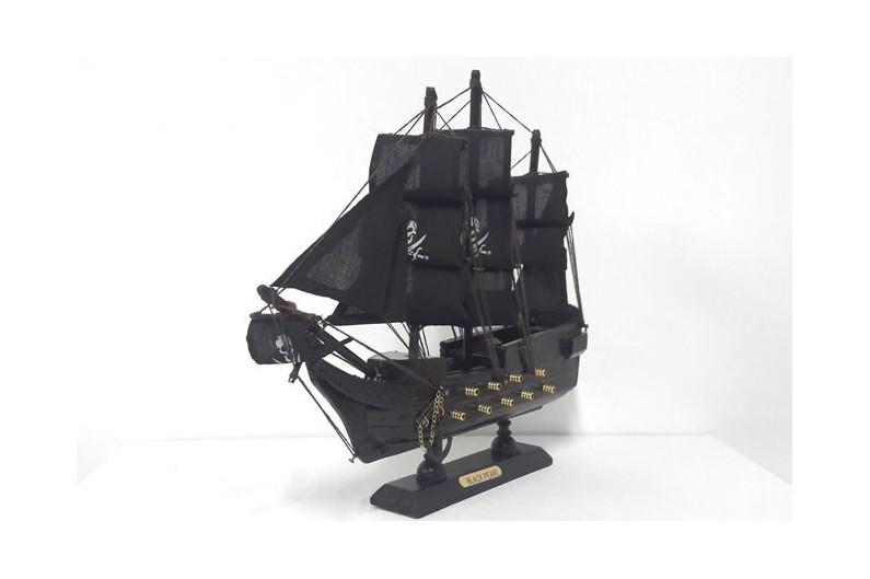 Set 2 Maquettes du "Black Pearl" ou "Perle Noire", conçu pour les films Pirates des Caraïbes. Beau modèle de décor marin en bois. Les voiles noires sont faits de coton.