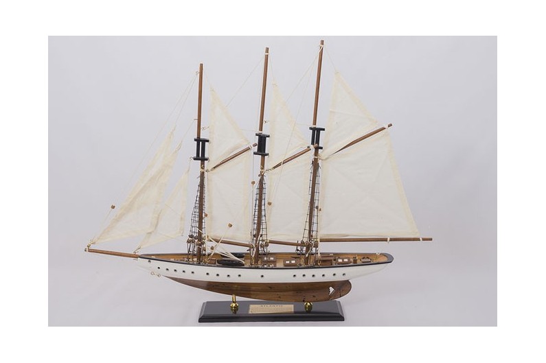 Modèle bateau de l'Atlantique (1903), un trois-mâts goélette conçue par William Gardner. Il a terminé en tant que navire-école pour la Garde côtière américaine. Les modèles est réalisée et peinte à la main. Le mât est démonté pour le transport.