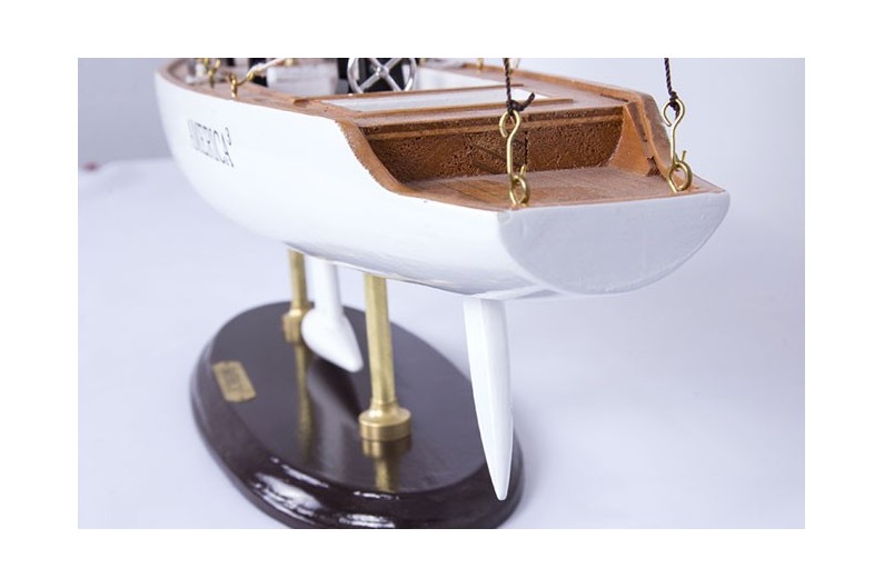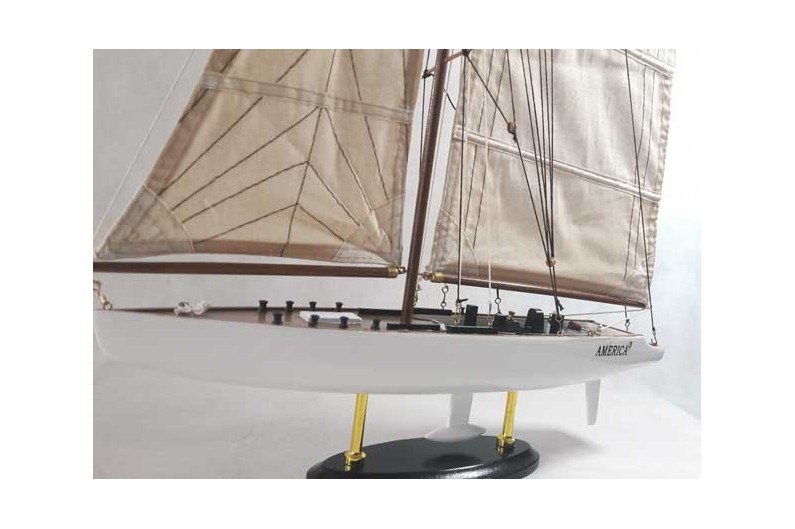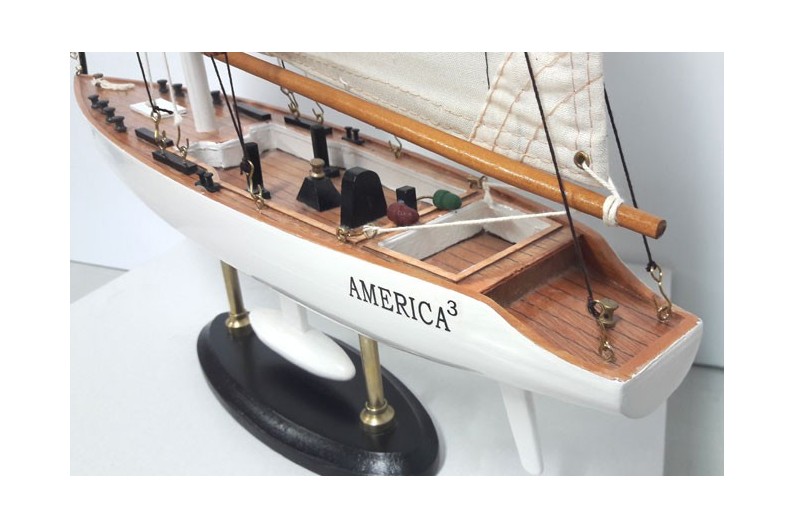 Beau modèle de la Coupe du navire AMERICA, avec de nombreux détails et très bien fini. Idéal pour les amateurs de compétition de voile comme un cadeau ou de décoration dans le bureau. Regardez une remorque pour la "Force du vent" film basé dans la Copa America.