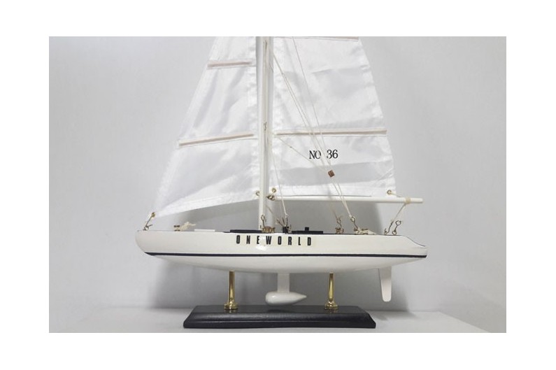 Reproduction d'un voilier de régate, disponible en deux couleurs, blanc et bleu / rouge. Mesurez également la tablette ou le lieu où vous envisagez de mettre cette belle reproduction, sont plus grandes qu'elles ne le paraissent.