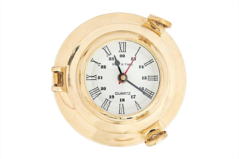 Horloge hublot de Quarz, intégré dans une cavité en laiton simulant un hublot.