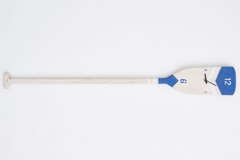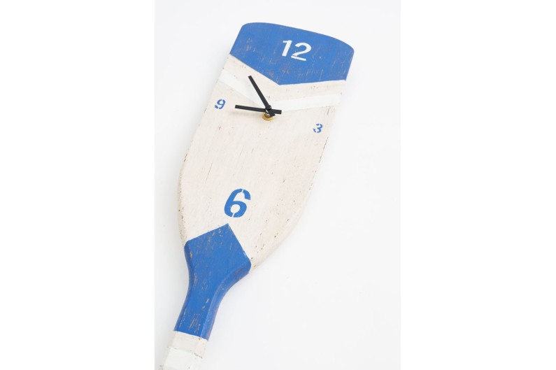 Horloge à quartz sur aviron en bois réalisée et peinte à la main. Décorez votre maison, votre restaurant ou votre hôtel avec cette horloge d'inspiration nautique.