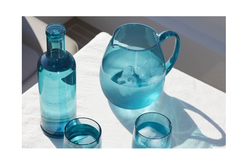 Ce pichet à eau (2,6L) est fabriqué en ECOZEN, Couleur turquoise. De plus, lors de l’utilisation de ce produit à l’extérieur, nous évitons tout risque de bris de vitre par accident.