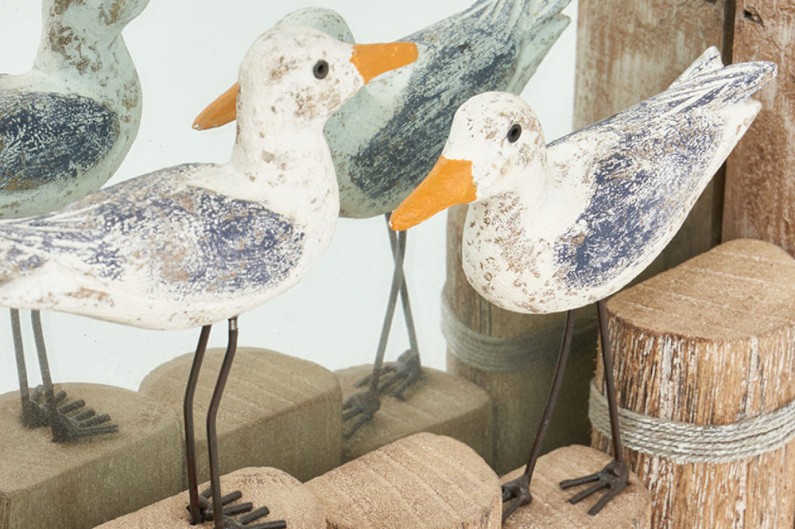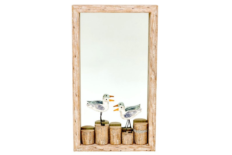 Miroir encadré de bois naturel, fait main, orné d'un magnifique oiseau.