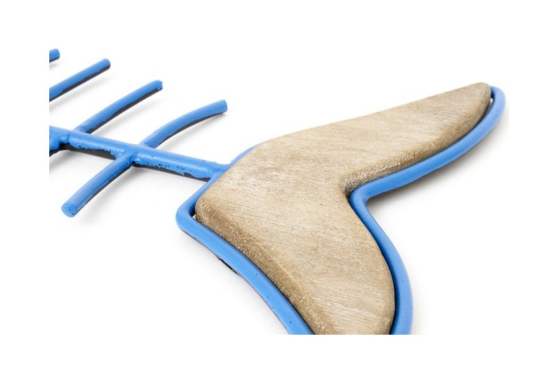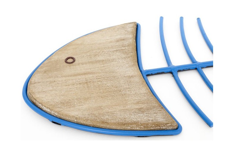 Poisson mural décoratif, fabriqué à la main avec de l'acier et du bois.