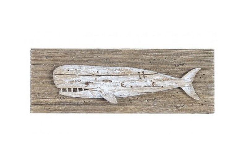 Table en bois marine décorative. Il se dresse une jolie baleine.