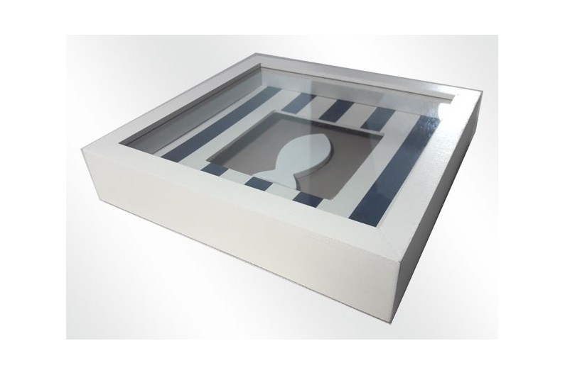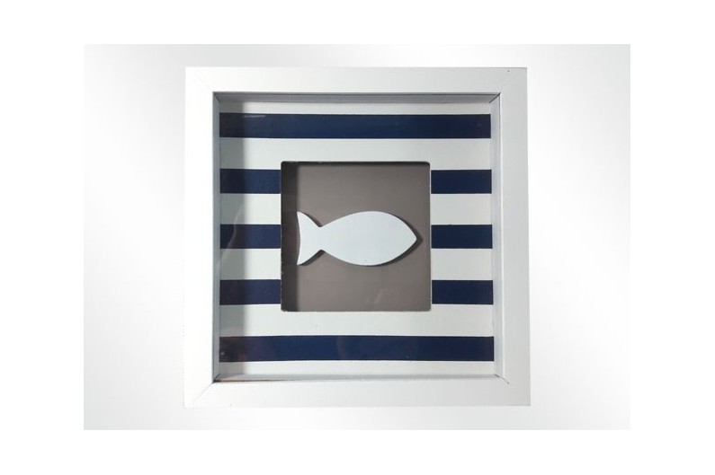 Table en bois marine décorative bleu. Il se trouve un beau poisson.