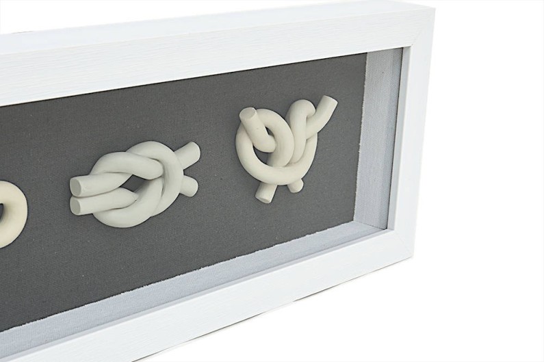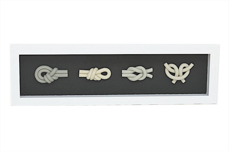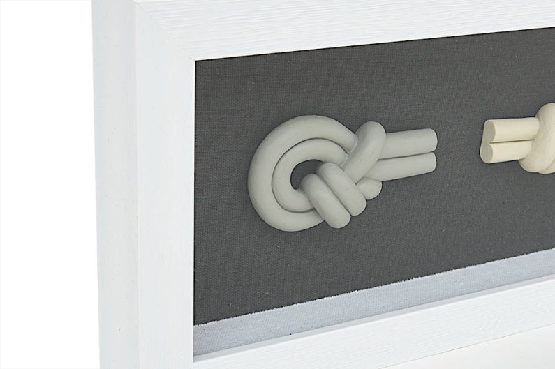 Belle peinture de nœud nautique. Avec un fond noir et un tableau en bois peint en blanc. Chacun des nœuds est réalisé de manière synthétique.