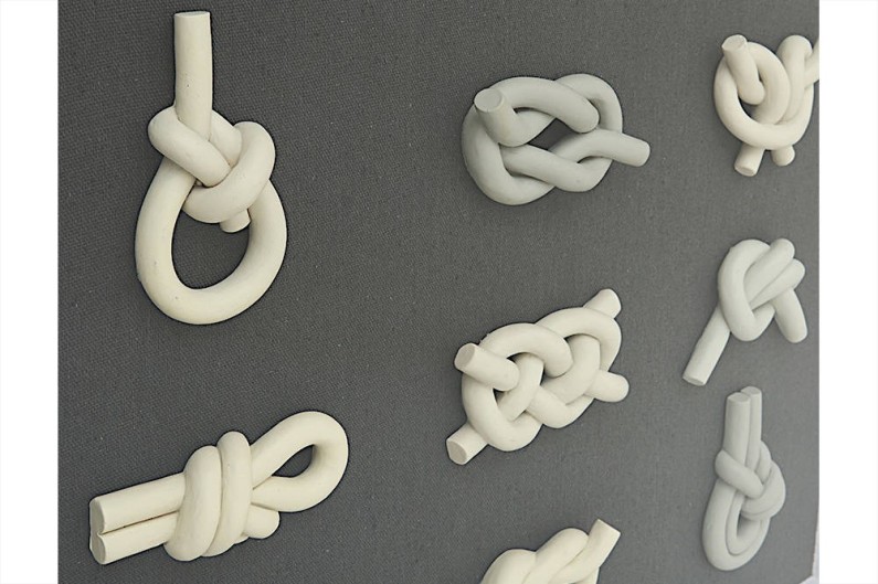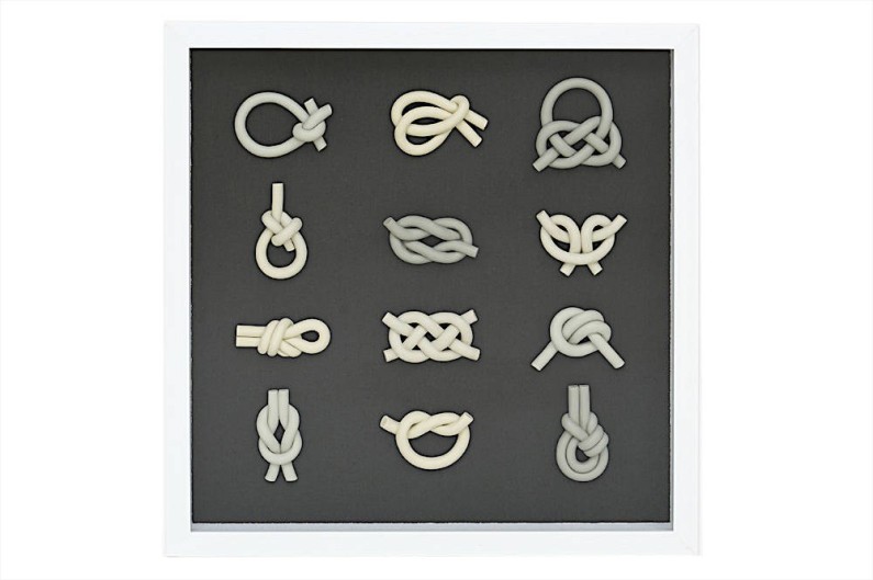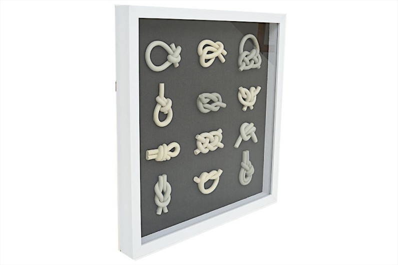 Belle peinture de nœud nautique. Avec un fond noir et un tableau en bois peint en blanc. Chacun des nœuds est réalisé de manière synthétique.