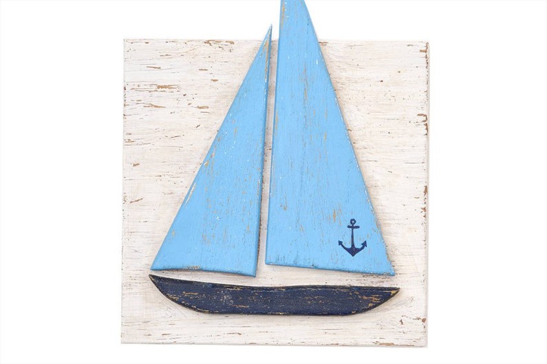 Lot de 3 tableaux marins décoratifs en bois. Trois beaux voiliers pour la décoration de la maison.