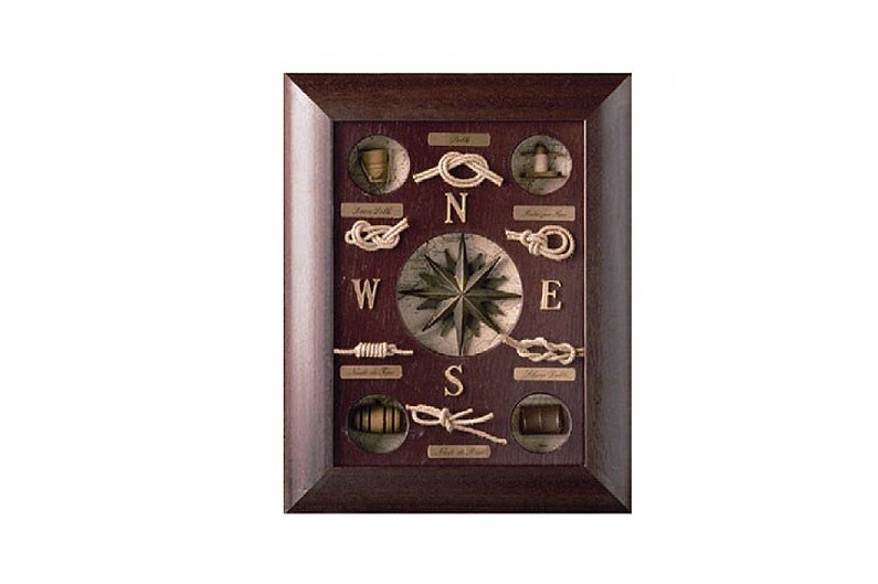 Tableau marin décoratif en bois. Remarquez-y une rose des vents.