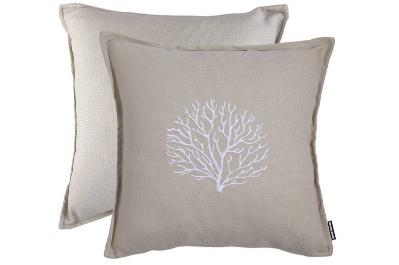 Lot de deux coussins ARUBA résistants à l'eau. Ils sont fabriqués en polypropylène, un tissu imperméable qui empêche l'eau de pénétrer à l'intérieur et qui est facile à laver avec juste un chiffon humide.