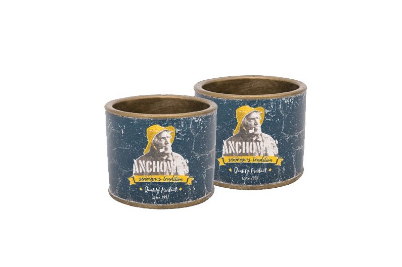 Boîte d'anchois en ciment. Idéal pour les apéritifs.