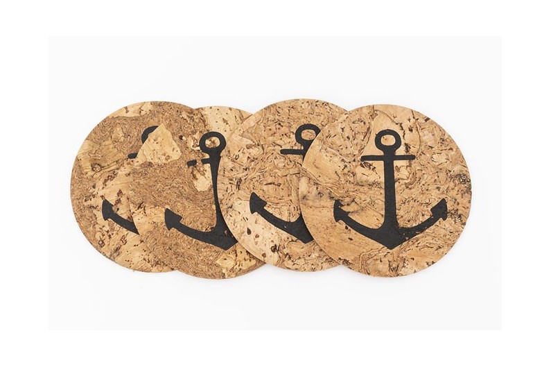 Set de 6 dessous-de-verre en Liège avec ancre.